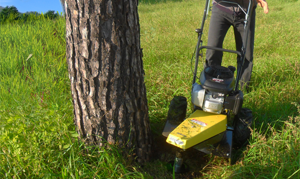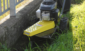 Bordatore a filo trazionato, ruote pneumatiche Tractor da 13" (330 mm), testina di taglio libera su cuscinetti, protezione laterale in acciaio. Motore Honda GCV 200.