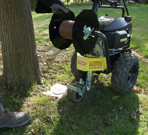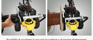 Macchina interrafilo professionale trazionata per impianti robotizzati, adatta ad ogni tipo di cavo elettrico e a tutti i modelli di robot. E' dotata del nuovo sistema brevettato di interramento doppio cavo, che consente di interrare contemporaneamente il cavo di andata e di ritorno nella realizzazione di isole. Compatta e leggera interra fino a 36 metri di cavo al minuto. L’inclinazione istantanea del manubrio permette di lavorare in vicinanza di cespugli e siepi; inoltre la sua testina orientabile brevettata conferisce alla macchina una eccezionale agilità fra qualsiasi ostacolo.