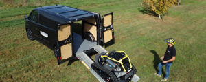 Macchina radiocomandata cingolata per lo sfalcio in condizioni estreme, progettata con dimensioni perfettamente compatibili con la maggior parte dei furgoni in commercio; piatto di taglio ventrale da 85cm per la massima compattezza e agilità. Progettata per lavorare in pendenza, in grado di tagliare in ogni direzione e su qualsiasi tipo di terreno senza perdere aderenza. E’ dotata di un sistema brevettato che impedisce la fuoriuscita dei cingoli e monta il nuovissimo motore Honda iGXV700 22 CV ad iniezione elettronica. Modello di design comunitario depositato.